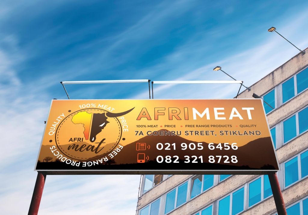 Most of the client’s meat source derives from Namibia and therefore a landscape with its sunset is the backdrop to this lightbox.
